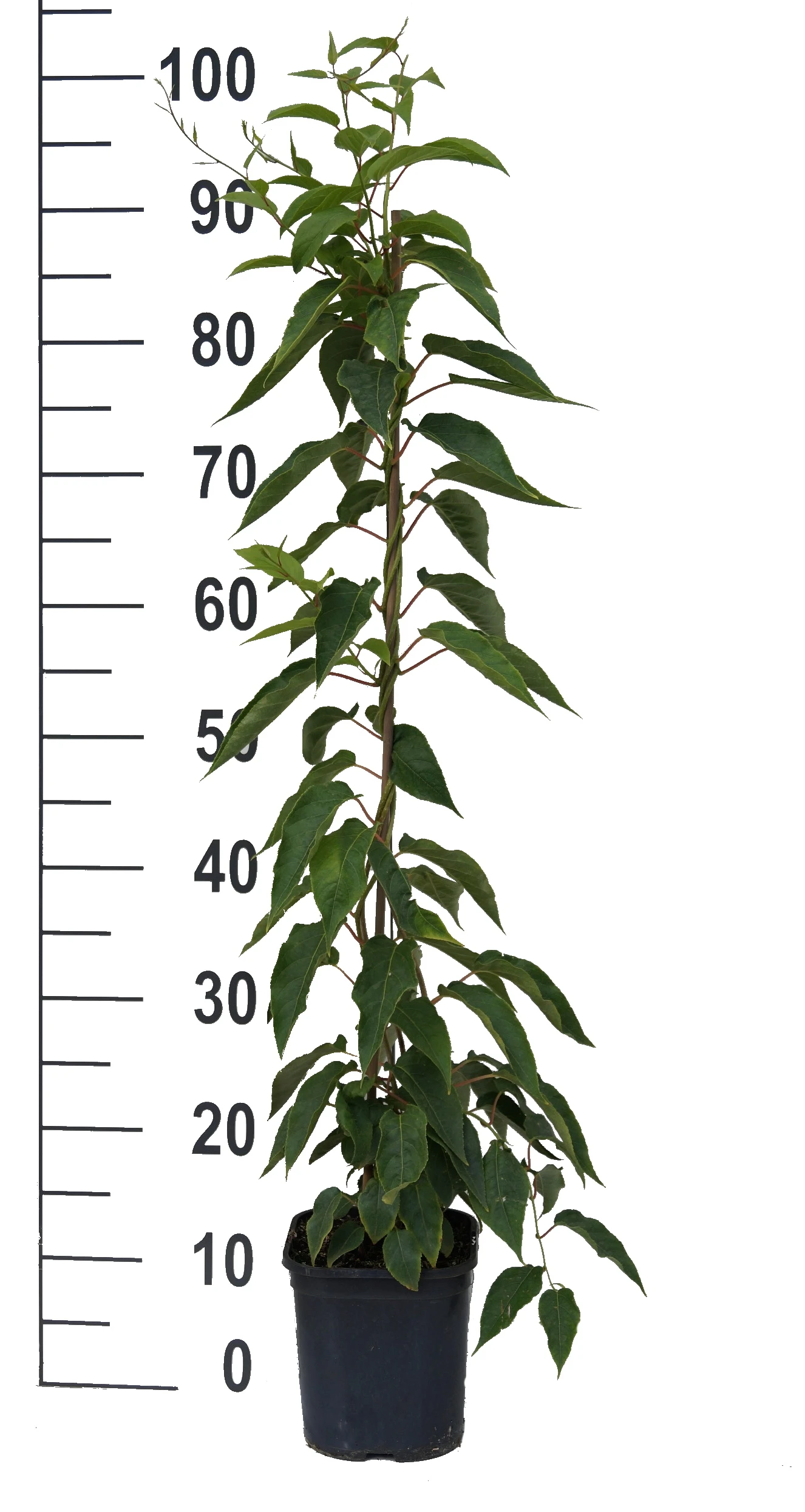Männliche Bayernkiwi: Beste Befruchtersorte für die weiblichen Sorten. Ist zwingend erforderlich damit die weiblichen Sorten Früchte ausbilden können.